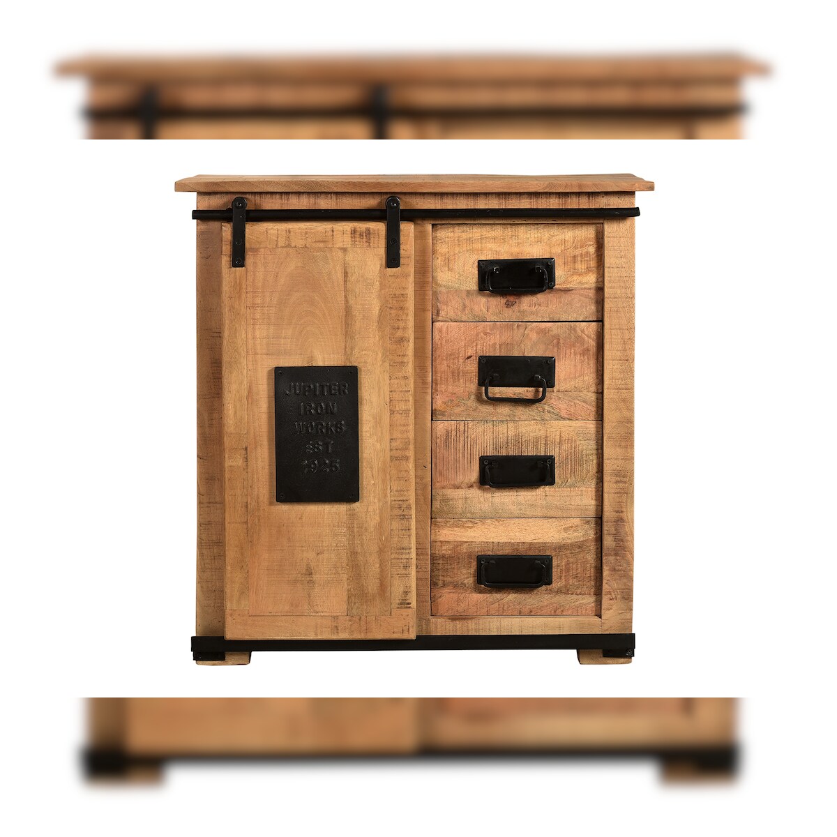 SIT Möbel Kommode | 1 Schiebetür | 4 Schubladen | Mango | Serie NAMUR | B 77 x T 38 x H 80 cm | natur mit antikschwarzen Beschlägen