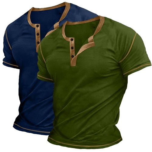 Per uomo Vichingo Maglietta Maglia Henley Manica Corta Vichingo Designer Retrò Vintage Streetwear Casuale Quotidiano Estate Primavera Tutte le stagioni Verde chiaro Blu Verde scuro Kaki Henley