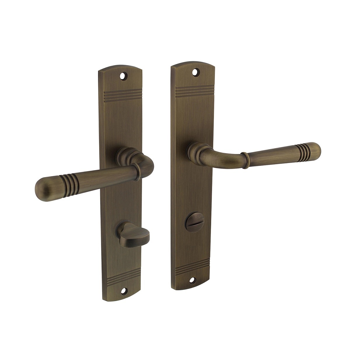 MS Beschläge Brünierte Langschildgarnitur Schildgarnitur Türdrücker Türbeschlag WC DIN Norm 8-78mm