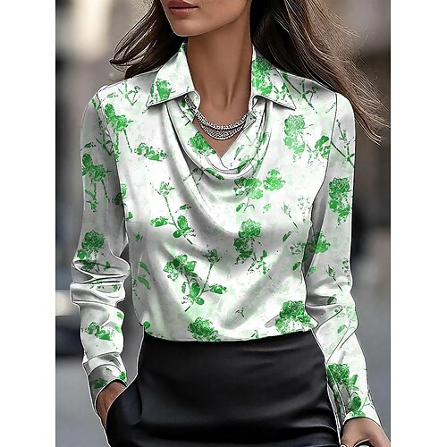 Per donna Blusa Ombre Floreale Grafico Elegante Essenziale Casual Manica Lunga Scollo a Cascata Top Regolari Lavoro Quotidiano Arricciato Drappeggiato Rosso Blu Viola Verde Estate Primavera Autunno