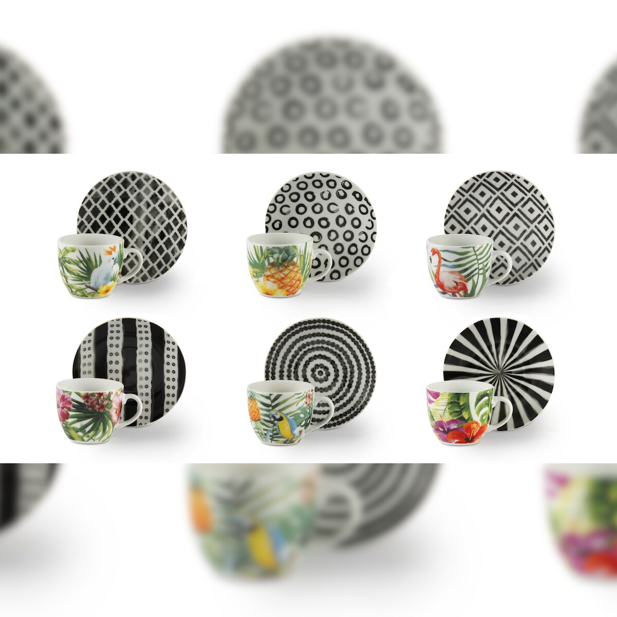 Excelsa Set mit 6 Espressotassen mit Untertassen Tropical Chic Porzellan 7 cl Bunt