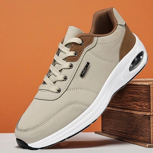 scarpe da ginnastica da uomo blu navy e marrone chiaro con suola con cuscinetto d'aria: calzature comode e alla moda per abbigliamento casual, viaggi e uso quotidiano