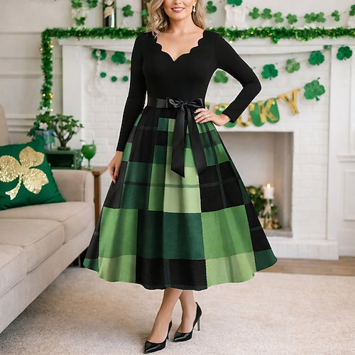 San Patrizio 2026 Anni 1950 Retrò Vintage Lunghezza al ginocchio Vestito Abito a Linea Abito da tè Lunghe Costume Per donna Giorno di San Patrizio Feste Festival Adolescente Adulti Vestito Abiti per