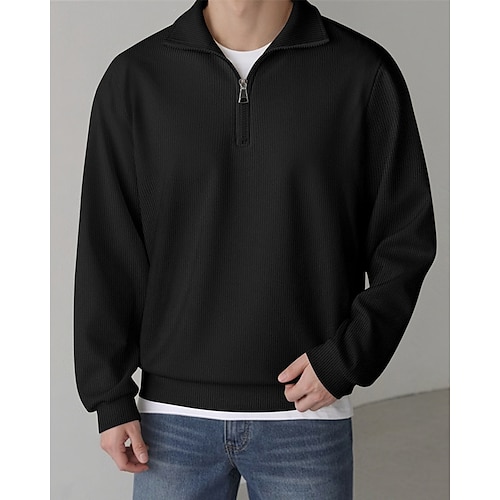 Per uomo Magliette Polo a Nido d'Ape Polo con zip a un quarto All'aperto Casual Zip a un quarto Manica Lunga Moda Moderno Tinta unica Testurizzato Lavorato a maglia Tutte le stagioni Vestibilit