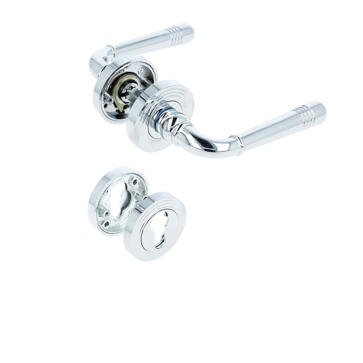 MS Beschläge Türdrücker Türbeschlag Rosettengarnitur Drückergarnitur Chrom Profilzylinder