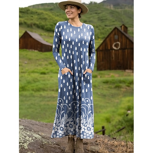 Per donna Abito maxi Tubino Vestito T-Shirt Vacanza Casual Boho Quotidiano Uscire Vestibilità regolare Floreale Grafico Manica Lunga Girocollo Marrone chiaro Blu Viola Verde Primavera Autunno Inverno