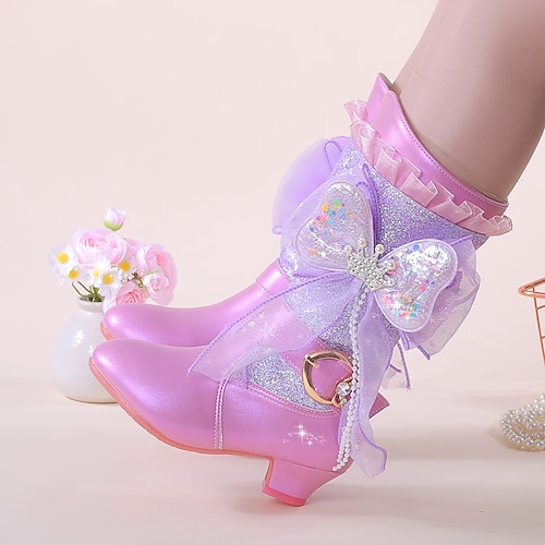 stivaletti scintillanti con glitter per bambine, decorati con fiocco e corona - colori disponibili: rosa, blu e viola