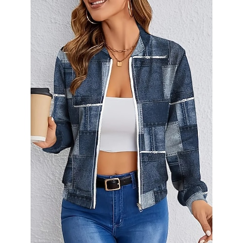 Per donna Giacca Casual Caldo Asciugatura Rapida Cerniera Tasca Elegante Moda Quotidiano Semplice Mimetico Vacanza Casuale Quotidiano Ferie Corto colletto da baseball Vestibilità regolare Manica Lunga