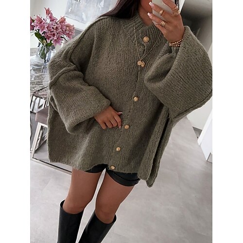 Per donna Felpa Cardigan Elegante Moda Streetwear Colore Puro Dolcevita Bottoni Lavorato a maglia Manica Lunga Top Regolari Maglia All'aperto Quotidiano Weekend Nero Verde Autunno Inverno