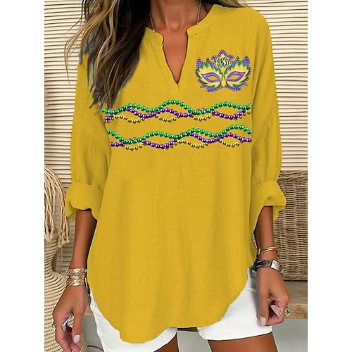 Carnevale Per donna Maglietta Grafico Vintage Moda Elegante Manica Lunga Girocollo Top Regolari Quotidiano Abbigliamento da sera Weekend Stampato Arcobaleno Primavera Autunno Inverno