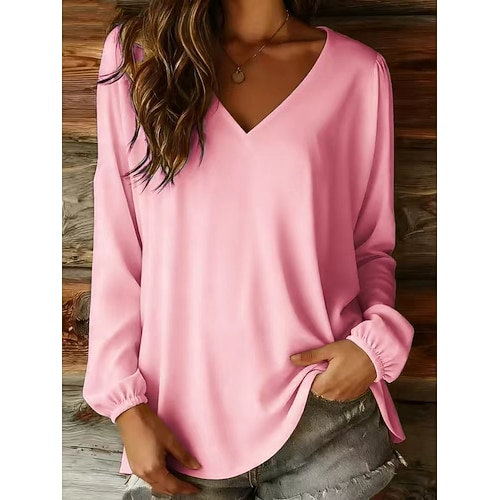 Per donna Maglietta Tinta unica Moda Elegante Classico Manica Lunga Scollo a V Top Regolari Quotidiano Uscire Weekend Bottoni Blu Nero Bianco Rosa Vino Primavera Autunno