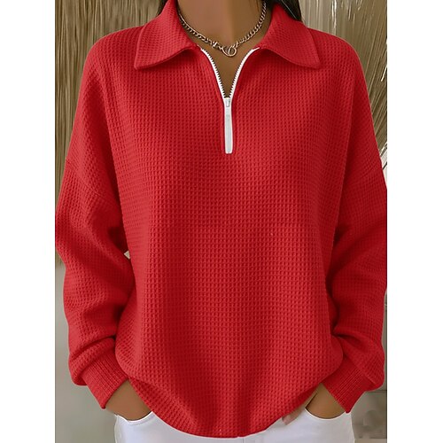 Per donna Felpa Pullover Semplice Casual Manica Lunga Mezza zip Top Regolari Abbigliamento Quotidiano Casuale Bianco Rosso Arancione Autunno Inverno