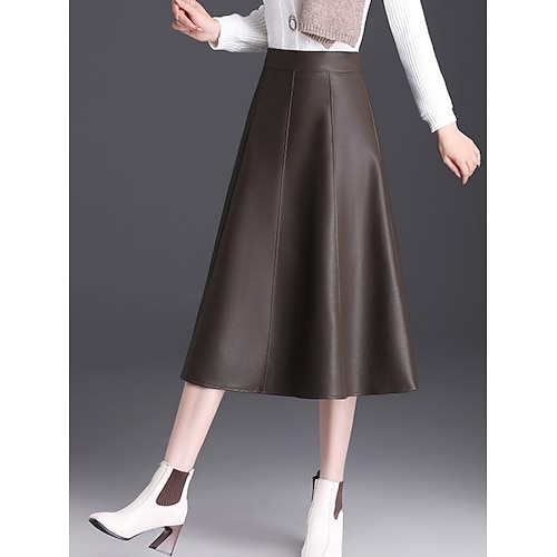 Per donna Gonna Linea A Elegante Moda Casual Midi Vita Alta Gonne Semplice Micro-elastico Streetwear Quotidiano Nero Caffè Primavera Finta pelle