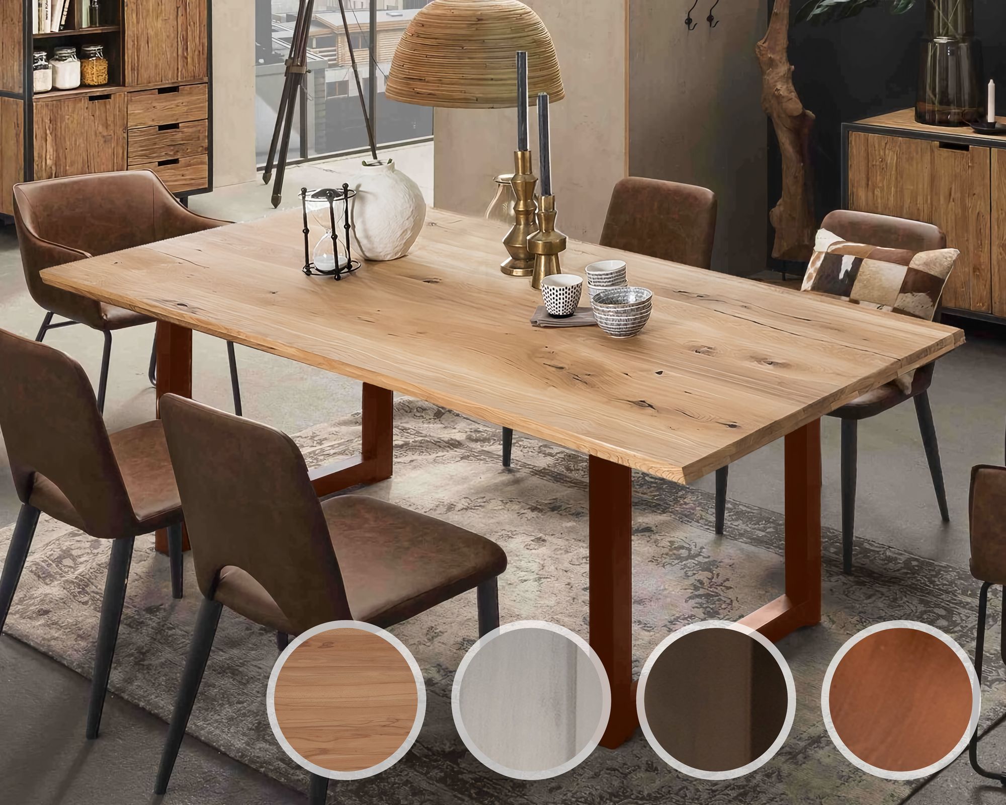 SIT Tops & Tables »Nebraska« Esstisch Wildeiche 200x100 cm / Eisen antikschwarz