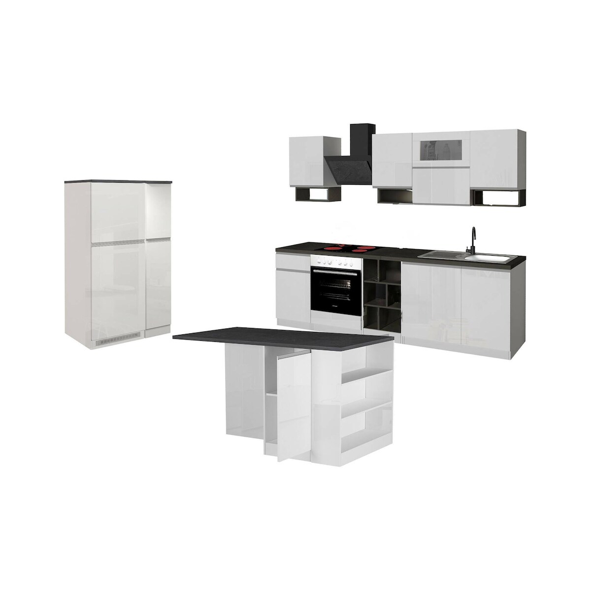 Dmora Vollständige Küche Dantenucc, Set mit Speisekammer, Küchenzeile Schrank, 100 % Made in Italy, glänzendes Weiß und Schiefer