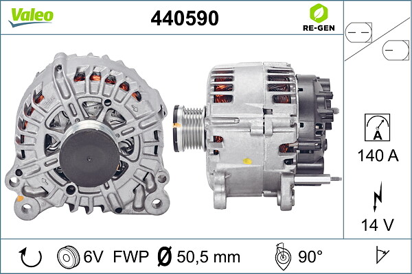 VALEO Generator REMANUFACTURED PREMIUM 440590 14V 140A für SKODA VW (SVW) SEAT (FAW) AUDI 3C903023SX 3C903024F 3C903024FX
