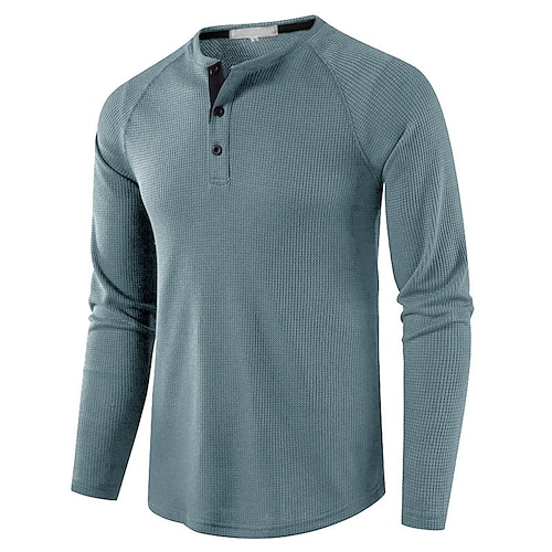 Per uomo maglietta Camicia Henley Waffle Camicia Henley T-shirt Maglia a maniche lunghe Liscio Henley Strada Da mare Manica lunga A maglia Abbigliamento Di tendenza Originale Essenziale