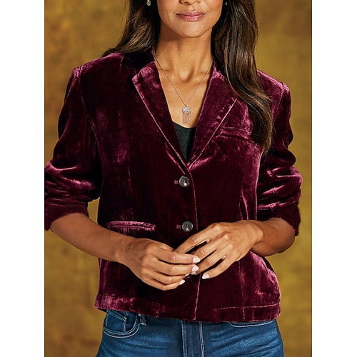 Per uomo Giacca blazer Colletto ad incastro Moda Classico Casual Tinta unita Blazer di velluto Verde militare Nero Marrone Vestibilità standard Monopetto Due Bottoni