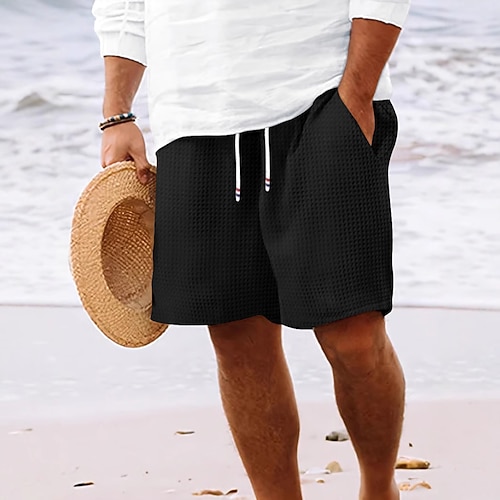 Per uomo Nido d'ape Shorts Pantaloncini Estivi Shorts da Spiaggia Pantaloncini casual Coulisse Elastico in vita Tinta unica Comodità Lunghezza al ginocchio Quotidiano All'aperto Abbigliamento casual