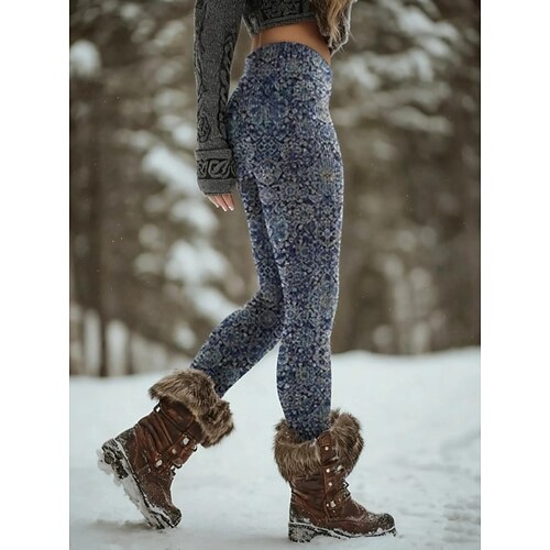 Per donna Leggings Vacanza Vintage Stile Etnico Lunghezza intera Vita Alta Grafico Geometrico Paisley Stampa 3D Asciugatura Rapida Traspirabilità Morbido Elasticizzato Inverno Blu Rosso scuro Blu