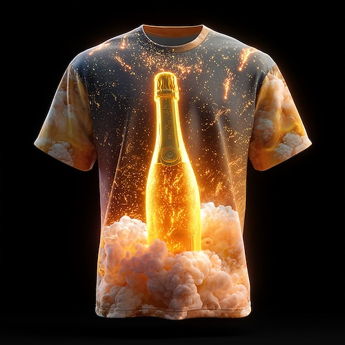 Capodanno Per uomo Buon anno Fuochi d'artificio Champagne Maglietta Manica Corta maglietta Stampa 3D Girocollo Camicia Esagerato Designer Artistico Feste Streetwear Club Oro D'oro 2 Autunno Inverno