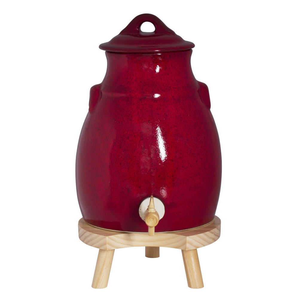 Essigkanne 3,5 l in Rot auf Holzsockel - 350 cl Rond Grès Table Passion