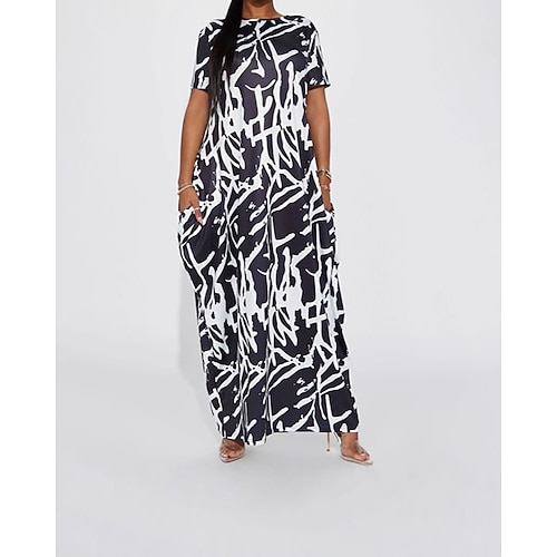 Per donna Abito Lungo Maxi Abito Vestito Casual Abito Stampato Moda Moderno Quotidiano Uscire Weekend Vestibilità comoda Semplice Manica Corta Girocollo Nero Primavera Autunno Inverno