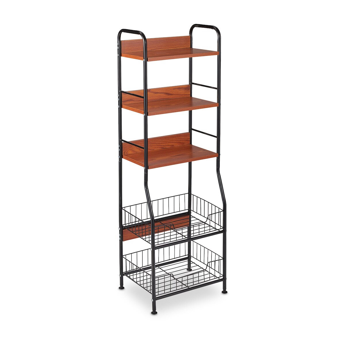 Relaxdays Küchenregal, 5 Ebenen, Obst- & Gemüsekörbe, für Küchenzubehör, schmales Vorratsregal, Metall & MDF, schwarz