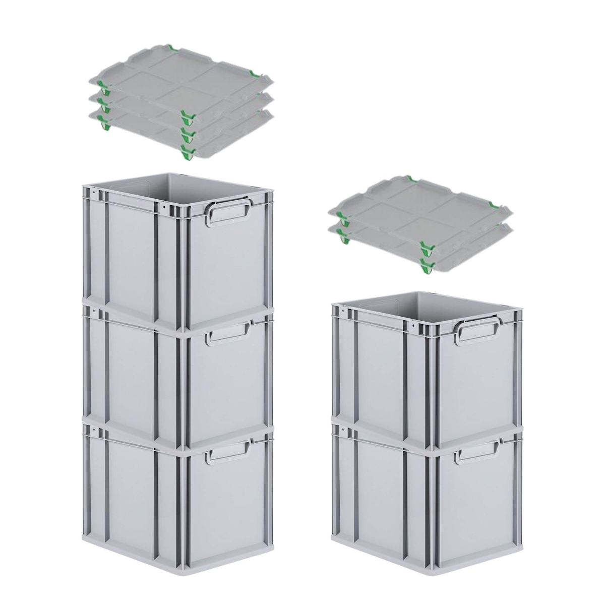 PROREGAL SparSet 5x Eurobox NextGen Economy mit Auflagedeckel & 4x Verschlüsse Grün, Griffe zu, HxBxT 32x30x40cm, 30L, Eurobehälter, Box