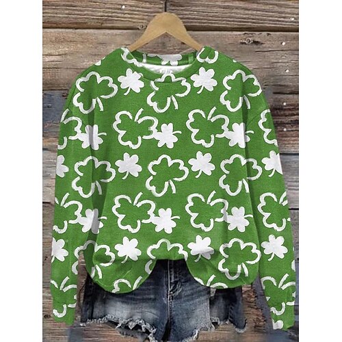 Felpa con cappuccio da donna per il Giorno di San Patrizio grafica trifoglio casual maniche lunghe collo rotondo top regolari casual street quotidiano grigia verde bianca verde primavera inverno