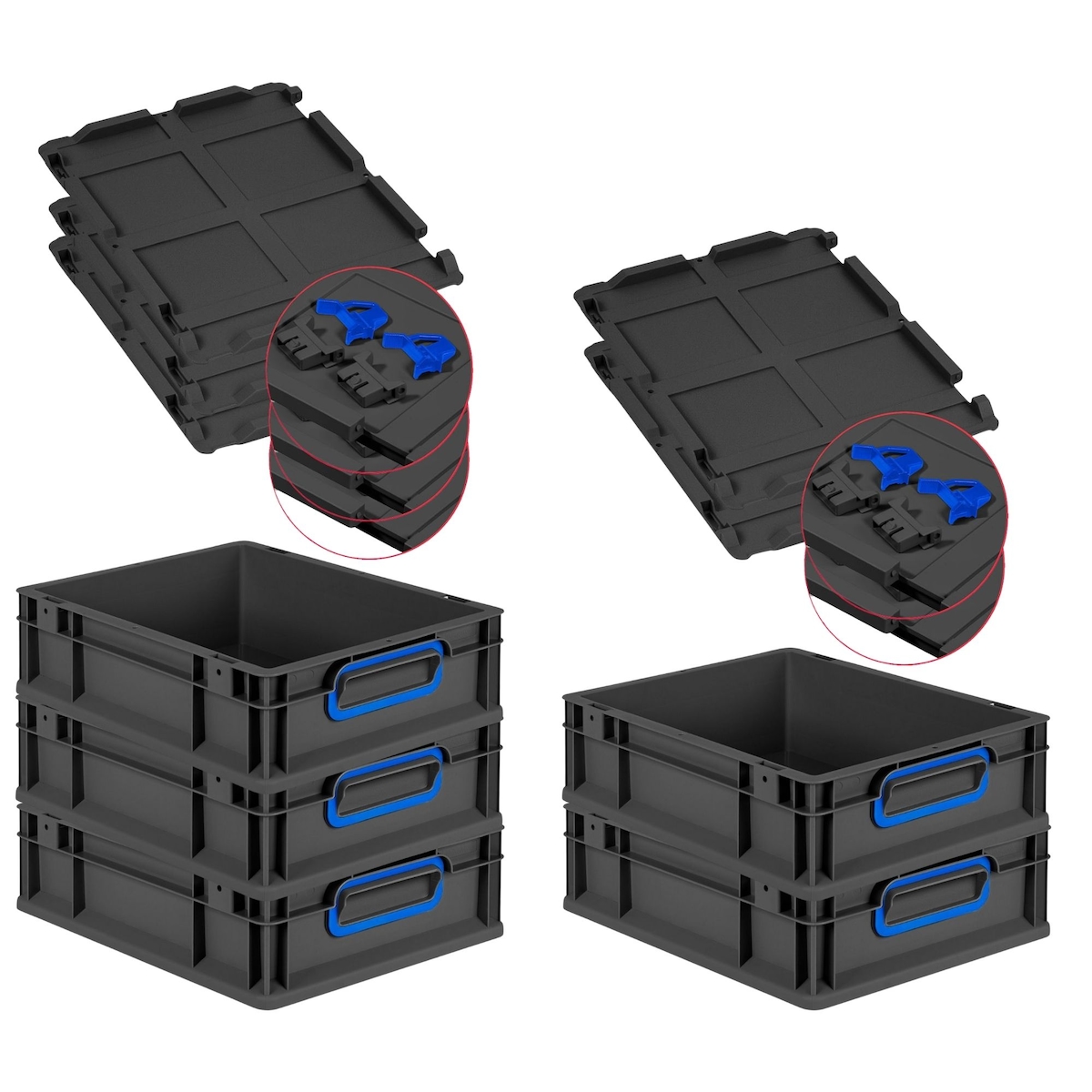 PROREGAL SuperSparSet 5x Eurobox NextGen Color mit Scharnierdeckel & Verschlüssen, HxBxT 12x30x40cm, 11L, Schwarz, Griffe blau zu, Eurobehälter