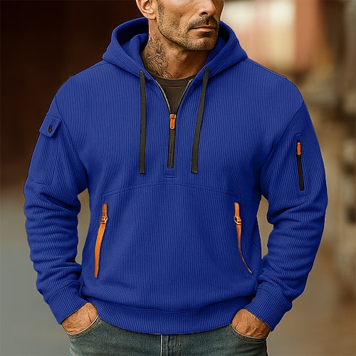 Per uomo Felpa con cappuccio Velluto a coste Felpa con cappuccio e zip corta Felpa con cappuccio in pile Felpa con cappuccio tattica Nero Bianco Rosso Blu Cachi Con Cappuccio Semplice Cerniera Sport