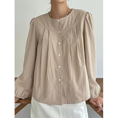 Per donna Camicia Camicia in cotone e lino Blusa Finto cotone e lino Semplice Elegante Casual Manica Lunga Girocollo Top Regolari Quotidiano Bottoni Cachi Estate Primavera Autunno