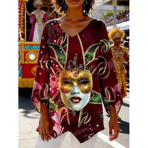 Blusa da donna maniche lunghe tunica ombre grafico geometrico elegante vintage tropicale maniche lunghe scollatura a V top regolari da indossare da giorno vacanze print bianco rosso arcobaleno estate