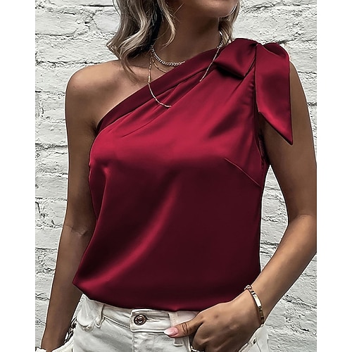 Per donna Top estivi Blusa Top Eleganti Tinta unica Semplice Elegante Signore Classico Senza Maniche Asimmetrico Top Regolari Quotidiano Lavoro Ferie Arricciato Nodo frontale Patchwork Rosso Estate