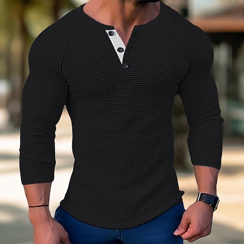 Per uomo maglietta Camicia Henley Waffle Camicia Henley T-shirt Maglia a maniche lunghe Liscio Henley Strada Da mare Manica lunga A maglia Abbigliamento Di tendenza Originale Essenziale