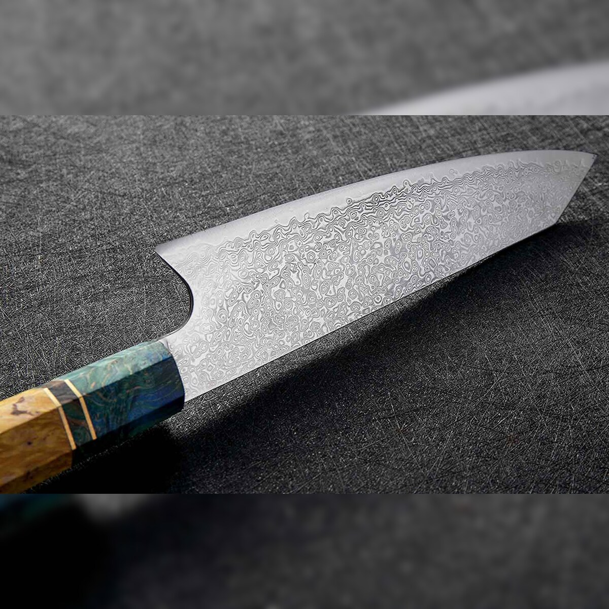 Muxel Santoku Damastmesser - exklusives Profimesser – 62 Schichten Damaststahl – jeder Holzgriff ein Unikat