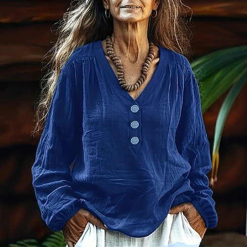 Per donna Blusa Tinta unica Elegante Casual Manica 3/4 Girocollo Top Regolari Quotidiano Bottoni Blu Viola Albicocca Estate Primavera