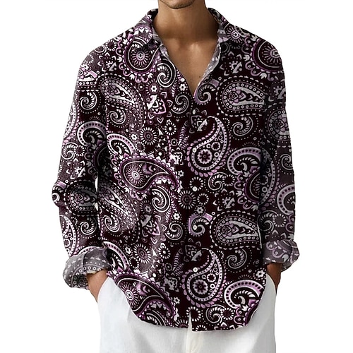 Per uomo Paisley Stampa Floreale Etnico Camicia Camicia con Bottoni Manica Lunga Vintage Retrò All'aperto Abbigliamento Quotidiano Primavera Autunno Collo ripiegato Stampa 3D camicie con colletto