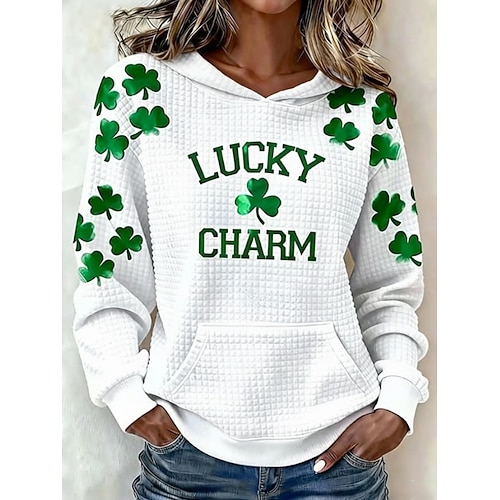 Felpa con cappuccio da donna per il giorno di San Patrizio con grafica trifoglio calda casual stampa maniche lunghe cappuccio top regolari casual strada stampa bianca primavera autunno inverno
