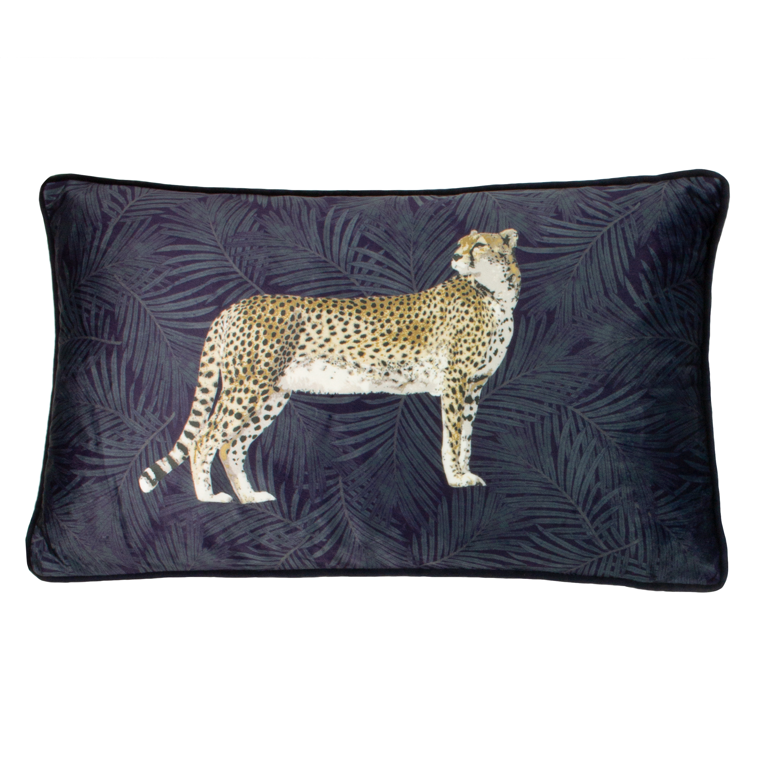 Paoletti Cheetah Forest Cushion - Navy - Size 30 cm x 50 cm | Paoletti Sale | Discount Designer Brands