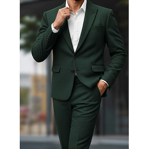 Uomo Matrimonio Affari Completi in Tweed Bavero a lancia Nero Verde scuro Quotidiano Affari Tinta unita Vestibilità su misura 2 pezzi Monopetto Due Bottoni