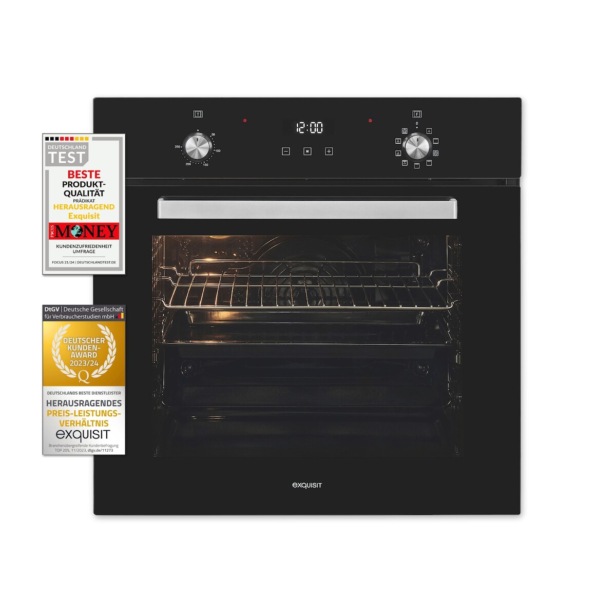 Exquisit Einbauherdset EHE285-HBZ-020-Set schwarz | 75 l Garraumvolumen | 9 Backofenprogramme | Kochfeld mit Rahmen | Energieklasse A