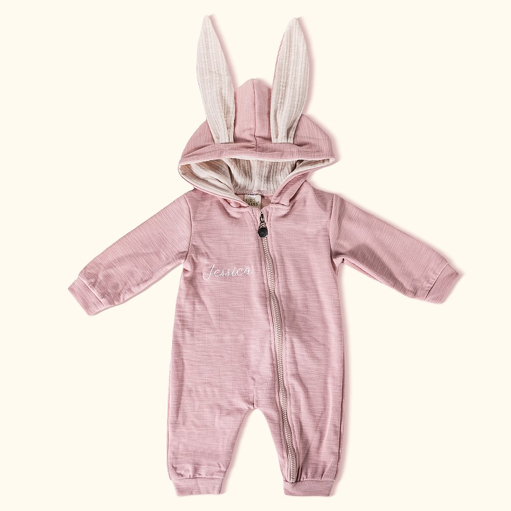 Personalisert flerfarget brodert navn Bunny Ears 100% bomulls body med integrert glidelås Bursdag påske Baby dåpsgave til spedbarn småbarn