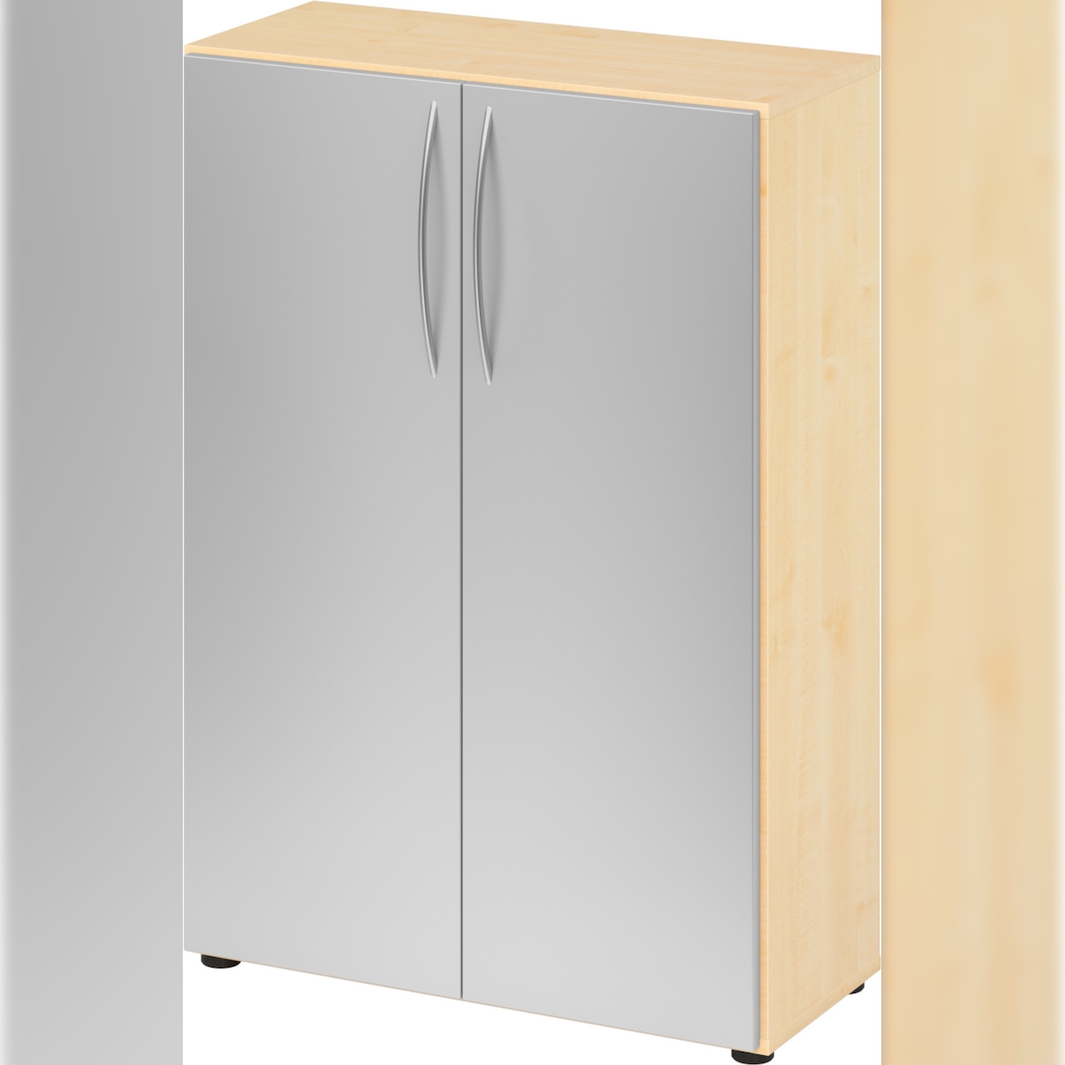 bümö Mehrzweckschrank 80cm breit, Aktenschrank o. Schuhschrank klein, Schrank mit Regal, Kommode in Ahorn/Silber aus Holz, Vorratsschrank &