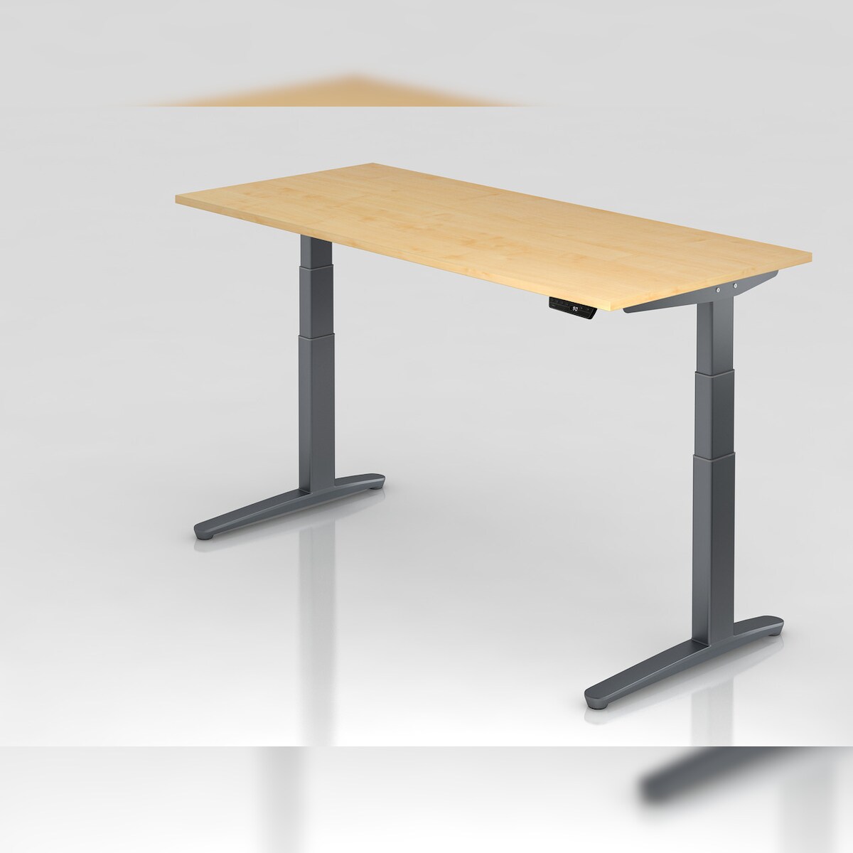 bümö elektrisch höhenverstellbarer Schreibtisch 180x80 cm in Ahorn, Gestell graphit mit Memory-Steuerung, elektrischer Bürotisch höhenverstellbar