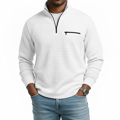 Per uomo Magliette Polo a Nido d'Ape Testurizzato All'aperto Casual Zip a un quarto Manica Lunga Moda Moderno Tinta unica Testurizzato Lavorato a maglia Autunno Primavera Autunno Autunno Inverno
