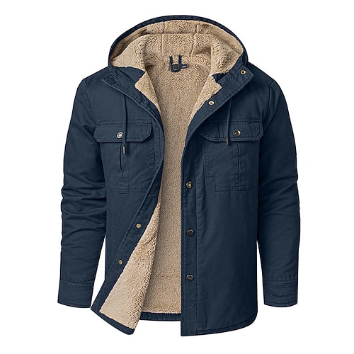 Per uomo Giacca in pile Cappotto teddy Giacca con cappuccio Giornaliero Da mare Tenere al caldo Tasche Vello Autunno inverno Liscio Di tendenza Streetwear Con cappuccio Standard Nero Blu marino Cachi