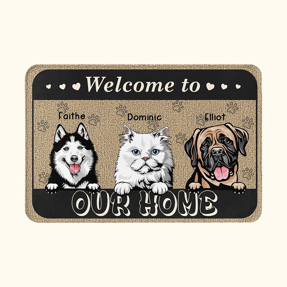 Alfombrilla de puerta personalizada Welcome To My Home Funny Pet Lovers Cat Dog Gift for Indoor Outdoor Entrance
