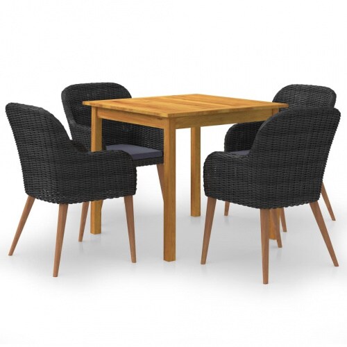 vidaXL 5-tlg. Garten-Essgruppe Poly Rattan und Akazienholz : Farbe - Schwarz